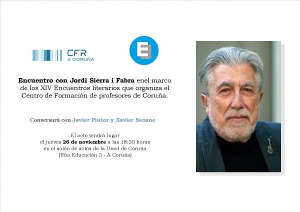 El autor Jordi Sierra i Fabra estará el próximo jueves 26 de octubre a partir de las 18:30 en el salón de actos de la UNED.